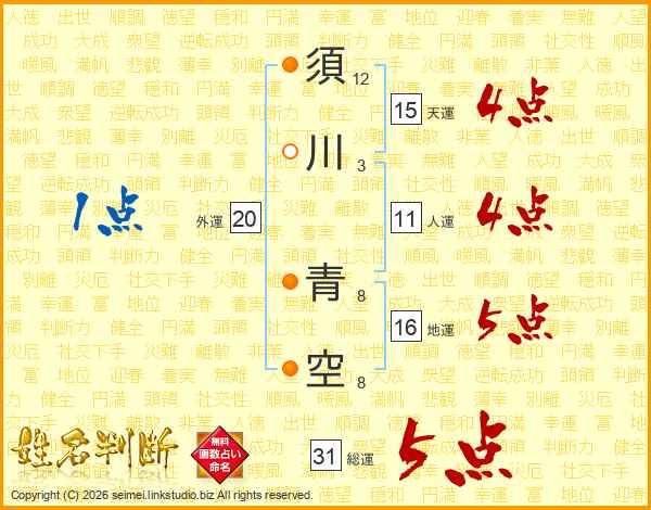 須川青空さんの総運は31画の5点!