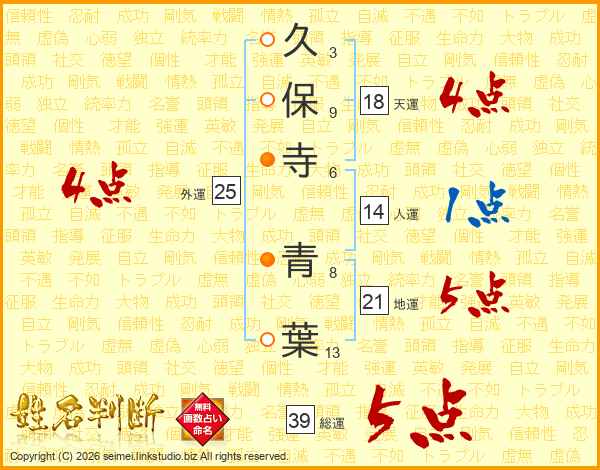 久保寺青葉さんの総運は39画の5点!
