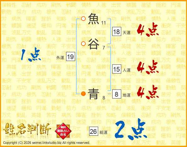 魚谷青さんの総運は26画の2点!