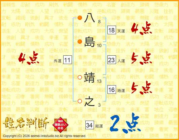 八島靖之さんの総運は34画の2点!