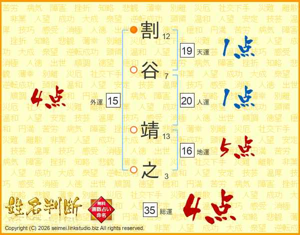 割谷靖之さんの総運は35画の4点!