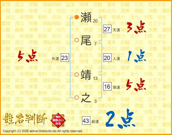 瀬尾靖之さんの天運は27画の3点!