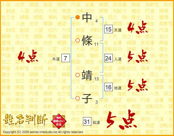 中條靖子さんの総運は31画の5点!