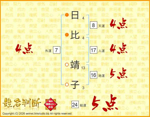 日(4画)比(4画) 靖(13画)子(3画)