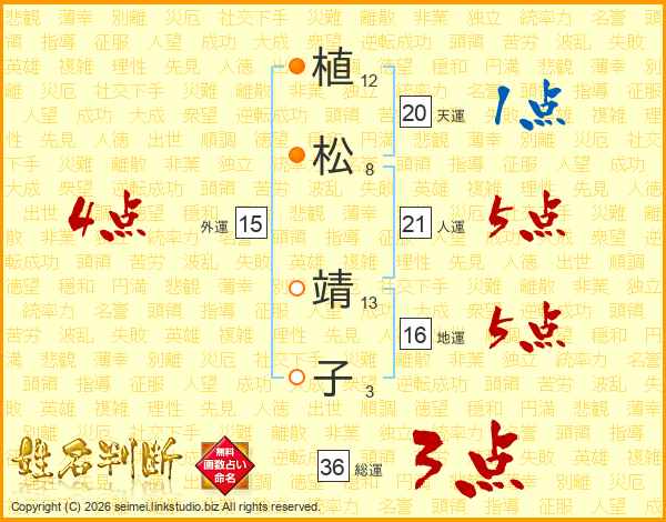 植松靖子さんの総運は36画の3点!