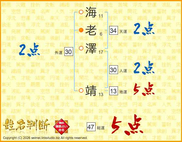 海老澤靖さんの総運は47画の5点!