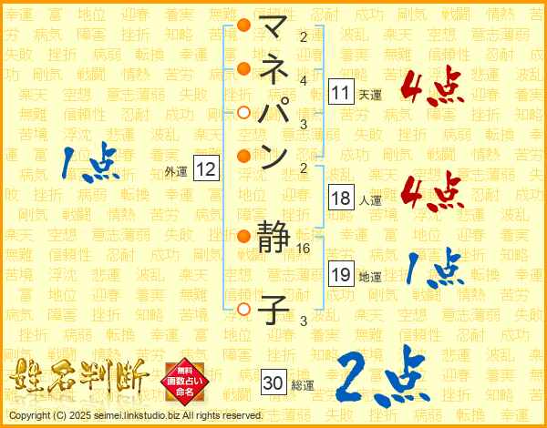 マ(2画)ネ(4画)パ(3画)ン(2画) 静(16画)子(3画)