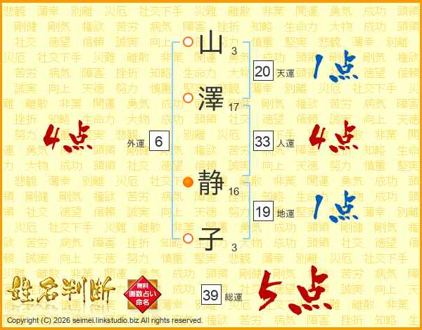 山(3画)澤(17画) 静(16画)子(3画)