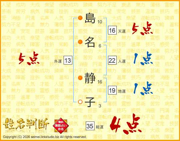 島名静子さんの総運は35画の4点!