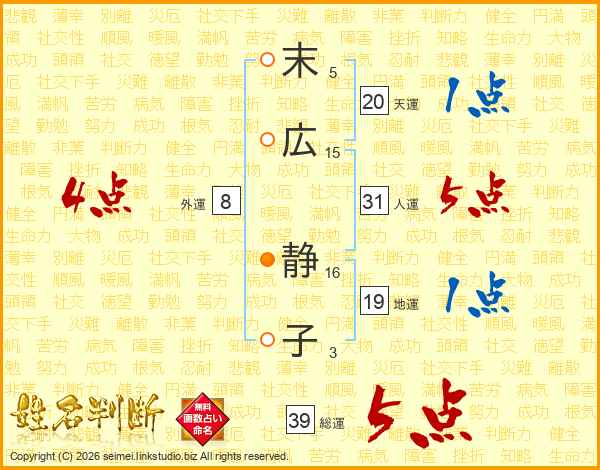 末(5画)広(15画) 静(16画)子(3画)