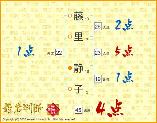 藤里静子さんの総運は45画の4点!