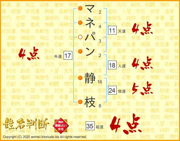 マネパン静枝さんの総運は35画の4点!