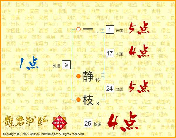 一静枝さんの総運は25画の4点!