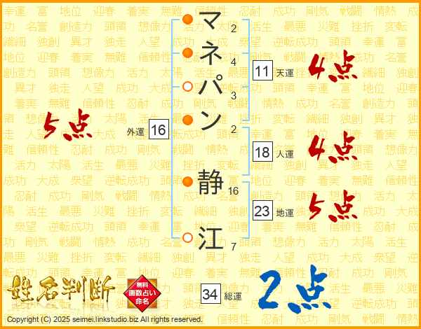マネパン静江さんの天運は11画の4点!