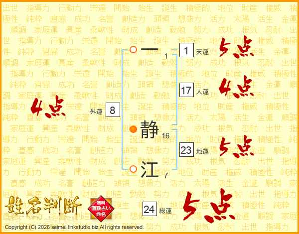 一静江さんの総運は24画の5点!
