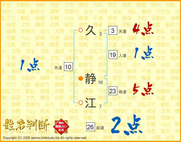 久静江さんの総運は26画の2点!