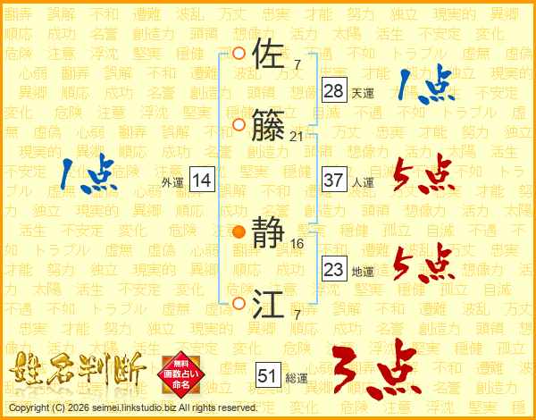 佐籐静江さんの総運は51画の3点!