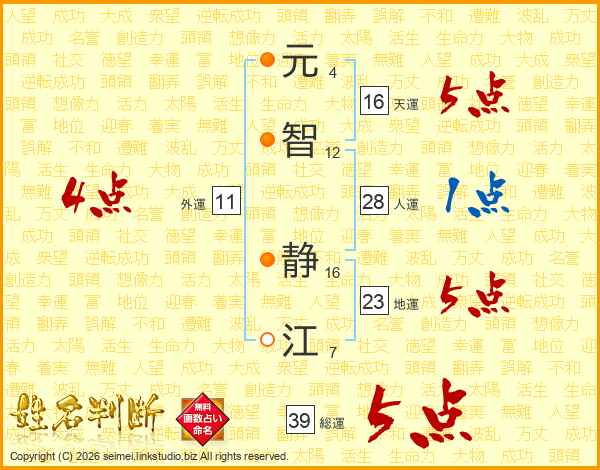 元智静江さんの総運は39画の5点!
