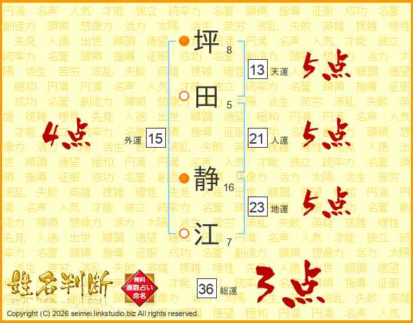 坪(8画)田(5画) 静(16画)江(7画)