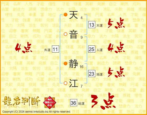天音静江さんの総運は36画の3点!