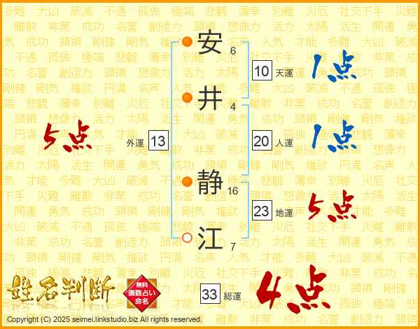安井静江さんの総運は33画の4点!