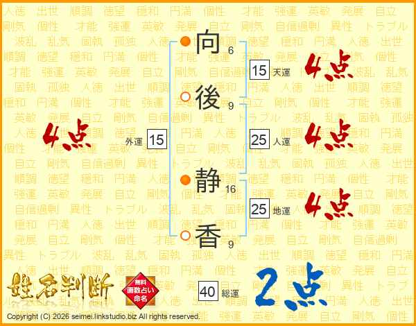 向後静香さんの地運は25画の4点!