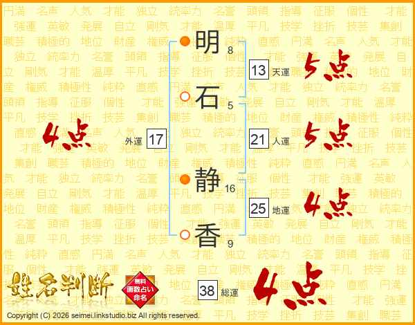 明石静香さんの総運は38画の4点!