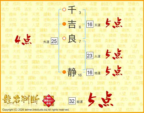 千吉良静さんの総運は32画の5点!