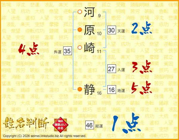 河原崎静さんの総運は46画の1点!