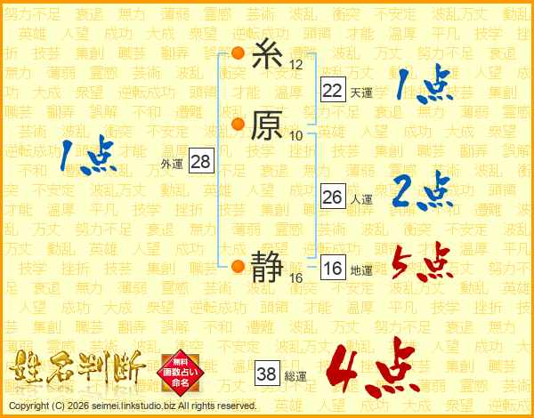 糸原静さんの総運は38画の4点!