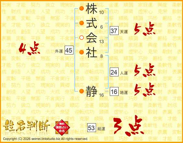 株(10画)式(6画)会(13画)社(8画) 静(16画)