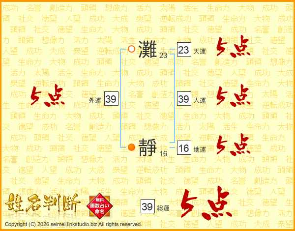 灘靜さんの総運は39画の5点!