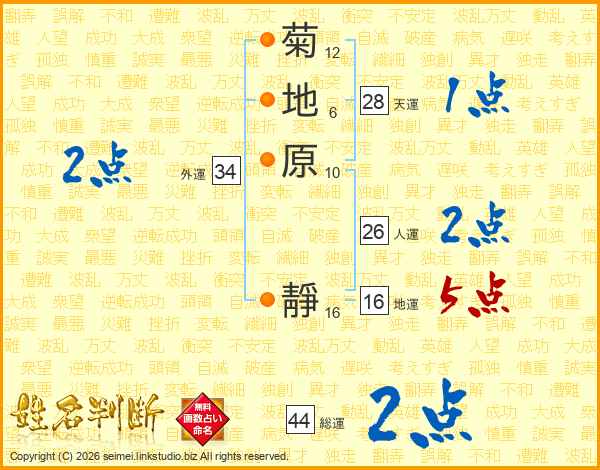 菊地原靜さんの総運は44画の2点!