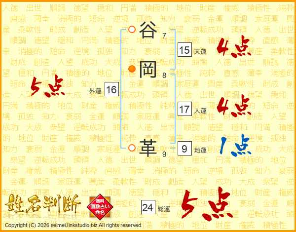 谷岡革さんの総運は24画の5点!