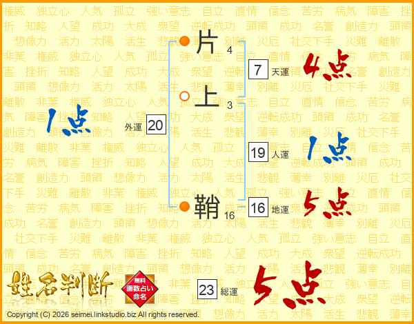 片上鞘さんの天運は7画の4点!