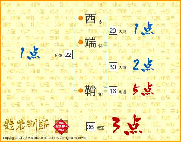 西端鞘さんの総運は36画の3点!