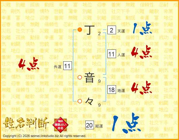 丁音々さんの総運は20画の1点!