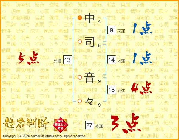 中(4画)司(5画) 音(9画)々(9画)