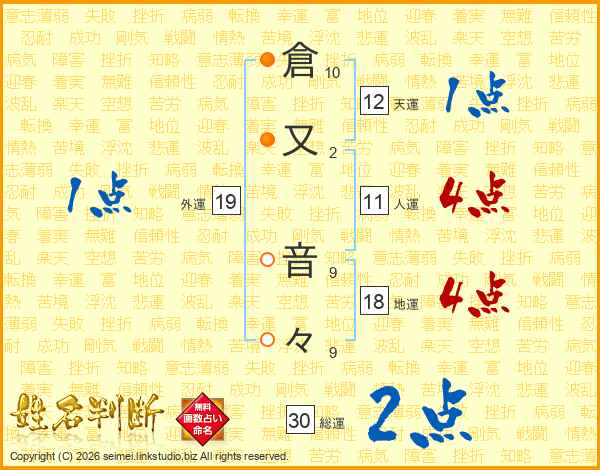 倉又音々さんの天運は12画の1点!