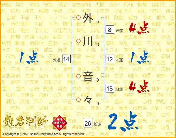 外川音々さんの総運は26画の2点!