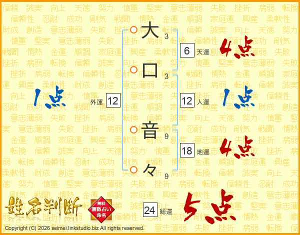 大口音々さんの総運は24画の5点!
