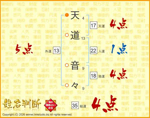 天道音々さんの外運は13画の5点!