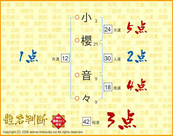 小櫻音々さんの天運は24画の5点!