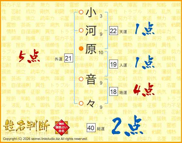 小河原音々さんの天運は22画の1点!