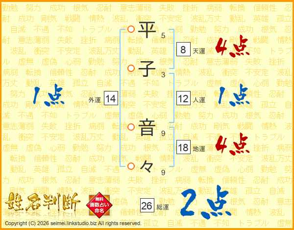 平子音々さんの総運は26画の2点!