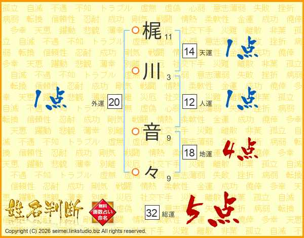 梶川音々さんの総運は32画の5点!