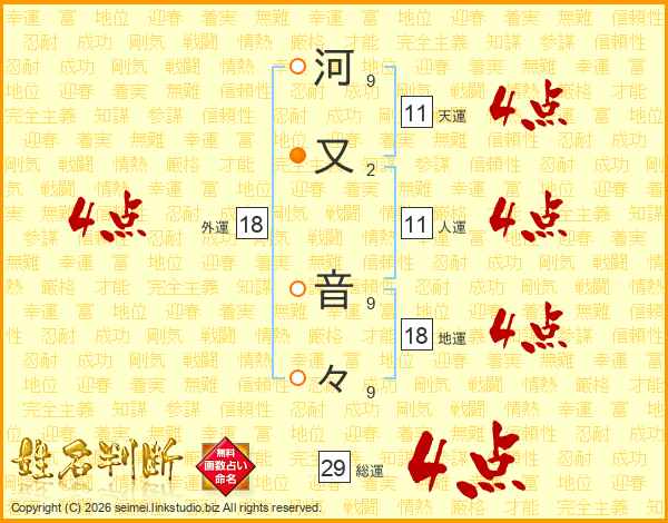 河又音々さんの総運は29画の4点!