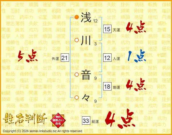 浅川音々さんの総運は33画の4点!