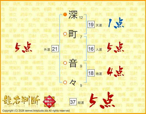 深町音々さんの総運は37画の5点!