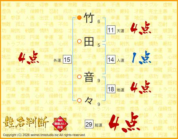 竹田音々さんの総運は29画の4点!